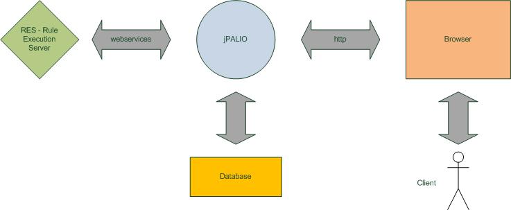 - serwer jPALIO komunikuje się za pomocą web services z serwerem wykonującym reguły (RES - Rule Execution Server) w celu wykonania reguły. W tym momencie przekazywane są wszystkie parametry do reguły.