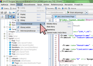 jDesigner posiada narzędzie do zmiany wielkości liter w tekście. Możliwe są 4 następujące przekształcenia: