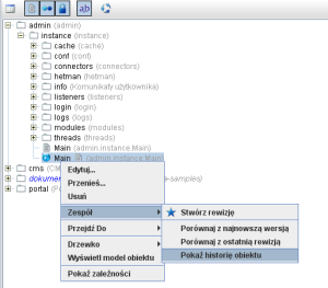 W celu obejrzenia historii obiektu, należy kliknąć prawym przyciskiem myszy na zaznaczony